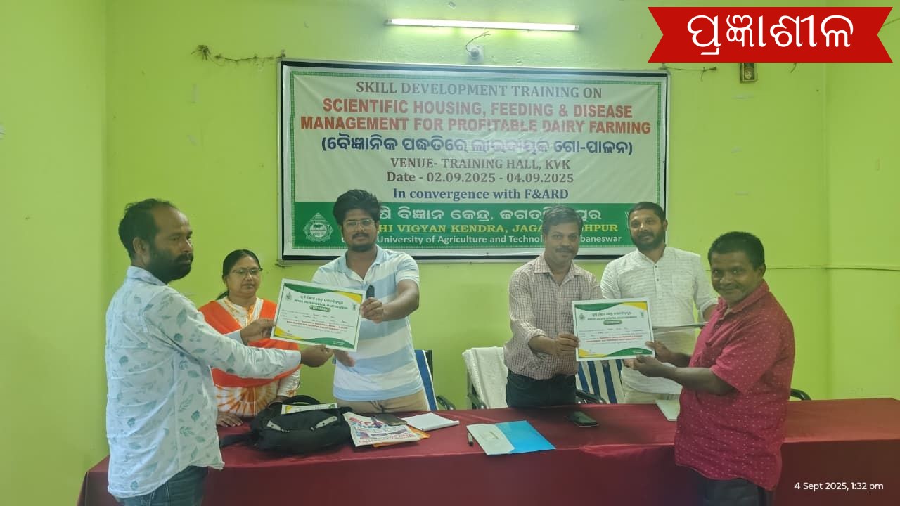 କୃଷି ବିଜ୍ଞାନ କେନ୍ଦ୍ର ଜଗତସିଂପୁରରେ ଗୋ-ପାଳନ ସମ୍ବନ୍ଧୀୟ ୩ ଦିନିଆ ଦକ୍ଷତା ବୃଦ୍ଧି ତାଲିମ କାର୍ଯ୍ୟକ୍ରମ ।
