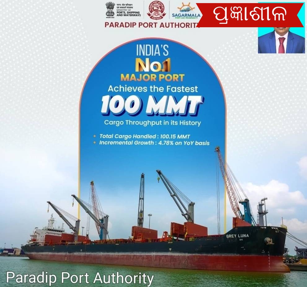 ଦ୍ରୁତତମ ୧୦୦ ଏମଏମଟି ପଣ୍ୟ ପରିଚାଳନା କରି ପୁନର୍ବାର ଇତିହାସ ରଚିଲା ପାରାଦ୍ଵୀପ ବନ୍ଦର ।