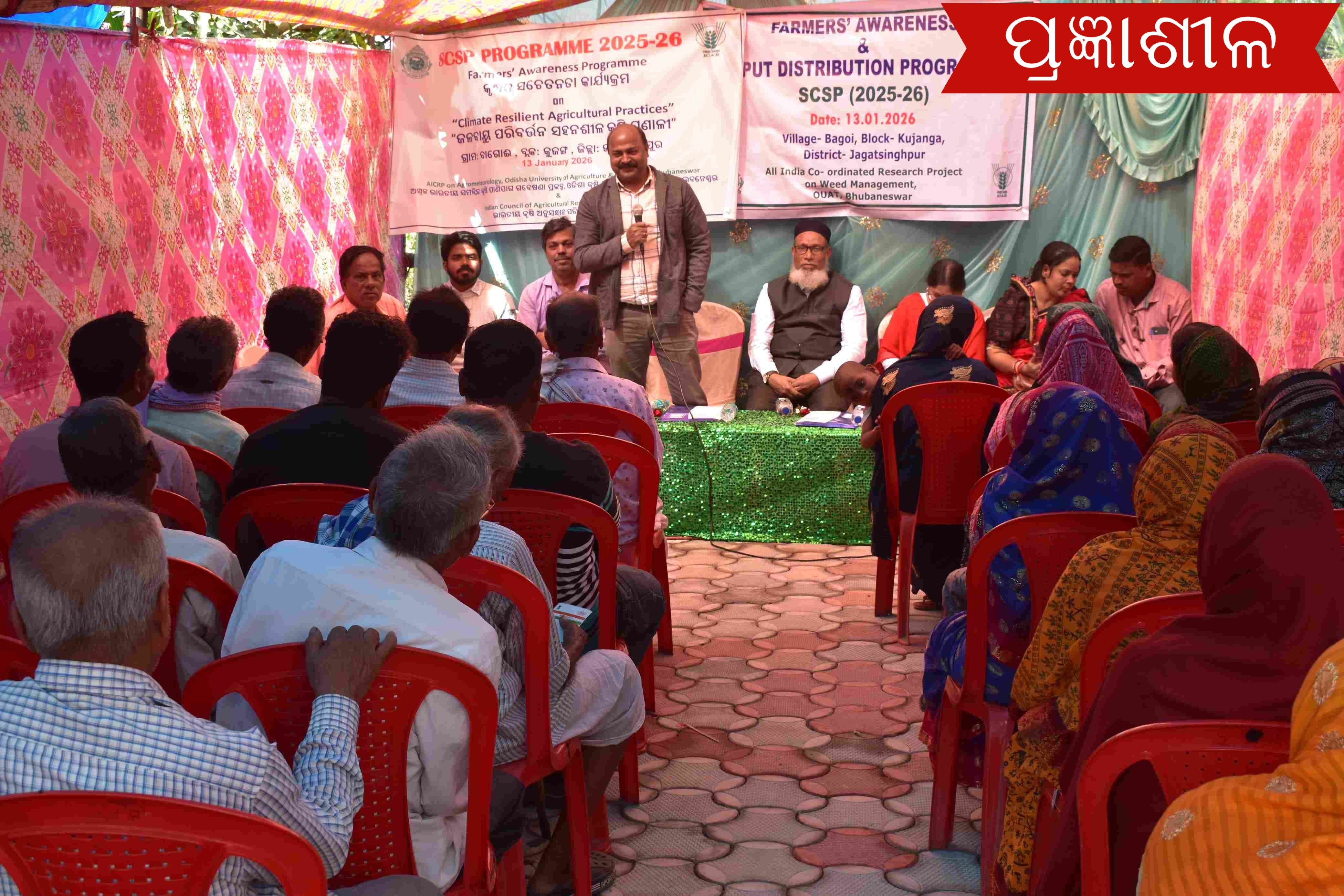 ଜଗତସିଂହପୁର ( ପି.ଏନ. ଏସ ) : ସର୍ବଭାରତୀୟ ସମନ୍ଵିତ କୃଷି ଜଳବାୟୁ ପ୍ରକଳ୍ପ, ସର୍ବଭାରତୀୟ ସମନ୍ଵିତ ତୃଣକ ପରିଚାଳନା ଗବେଷଣା ପ୍ରକଳ୍ପ ଓ କୃଷି ବିଜ୍ଞାନ କେନ୍ଦ୍ର, ଜଗତସିଂହପୁରର ମିଳିତ ପ୍ରୟାସରେ ସଂପ୍ରତି ଜଗତସିଂହପୁର ଜିଲ୍ଲା ଅନ୍ତର୍ଗତ କୁଜଙ୍ଗ ବ୍ଲକର ବାଗୋଇ ଗ୍ରାମରେ ଅନୁସୂଚିତ ଜାତି ଉପଯୋଜନା ଆନୁକୁଲ୍ୟରେ ଏକ କୃଷକ ସଚେତନତା ଶିବିର ତଥା କୃଷି ସାମଗ୍ରୀ ବିତରଣ କର୍ଯ୍ୟକ୍ରମ ଅନୁଷ୍ଠିତ ହୋଇଯାଇଛି । ଏହି କାର୍ଯ୍ୟକ୍ରମରେ ଗ୍ରାମର ୭୦ଜଣ ଅନୁସୂଚିତ ଜାତିର କୃଷକ ଓ କୃଷି ମହିଳା ସକ୍ରିୟ ଭାବରେ ଅଂଶ ଗ୍ରହଣ କରିଥିଲେ । ଉକ୍ତ କାର୍ଯ୍ୟକ୍ରମକୁ କୃଷି ବିଜ୍ଞାନ କେନ୍ଦ୍ରର ବରିଷ୍ଠ ବୈଜ୍ଞାନିକ ତଥା ମୁଖ୍ୟ ଡ଼ ଜୀବନଜିତ୍ ସେନ୍ ପରିଚାଳନା କରିଥିଲେ । ଏହି କାର୍ଯ୍ୟକ୍ରମରେ ଓ.ୟୁ.ଏ.ଟି କୃଷି ପାଣିପାଗ ପ୍ରକଳ୍ପ ର ମୁଖ୍ୟ ପ୍ରଫେସର୍ ଡ଼ ତୁଷାର ରଞ୍ଜନ ମହାନ୍ତି,କୃଷି କ୍ଷେତ୍ରରେ ଜଳବାୟୁ ପରିବର୍ତ୍ତନର ପ୍ରଭାବ ତଥା ଏହାର ସଫଳ ମୁକାବିଲା ପାଇଁ ଓ.ୟୁ.ଏ.ଟି ଦ୍ଵାରା ଜାରି କରାଯାଉଥିବା ସାପ୍ତାହିକ ପାଣିପାଗ ଭିତ୍ତିକ କୃଷି ପରାମର୍ଶକୁ ଗ୍ରହଣ କରି ଚାଷକାର୍ଯ୍ୟ କରିବାକୁ ପରାମର୍ଶ ଦେଇଥିଲେ। ଏହି ଅବସରରେ ଅଖିଳ ଭାରତୀୟ ସମନ୍ଵିତ ତୃଣକ ପରିଚାଳନା ଗବେଷଣା ପ୍ରକଳ୍ପ, ଓଡ଼ିଶା କୃଷି ଓ ବୈଷୟିକ ବିଶ୍ୱବିଦ୍ୟାଳୟ, ଭୁବନେଶ୍ୱରର ମୁଖ୍ୟ ବୈଜ୍ଞାନିକ ଡ଼ ମହମ୍ମଦ ଅବଦୁଲ ଆଲିମ୍ ଉଦବୋଧନ ଦେଇ କହିଥିଲେ ଯେ ଧାନ ଚାଷରେ ଘାସ ହେଉଛି ଉତ୍ପାଦନ କମିବାର ଏକ ପ୍ରମୁଖ କାରଣ ସେ କହିଥିଲେ ଯେ ଉଚିତ୍ ସମୟରେ ଓ ଉଚିତ୍ ମାତ୍ରାରେ ଖରପତ୍ରନାଶକ ପ୍ରୟୋଗ କରାଯାଏ, ତେବେ ଧାନ ଉତ୍ପାଦନ ୨୦ ରୁ ୩୦ ପ୍ରତିଶତ ପର୍ଯ୍ୟନ୍ତ ବୃଦ୍ଧି ପାଇପାରେ। ଡ଼ ଆଲିମ୍ ଧାନ ଚାଷରେ ଧାନ ରୋଇବାର ୩ ରୁ ୫ ଦିନ ମଧ୍ୟରେ ପେଣ୍ଡିମେଥାଲିନ୍ ୩୦ ଇ.ସି ଓ ୨୦-୨୫ ଦିନ ମଧ୍ୟରେ ଫେନୋକ୍ସାପ୍ରପ ଇଥାଇଲ୍ ସିଞ୍ଚନ କରିବାପାଇଁ ଉଲ୍ଲେଖ କରିଥିଲେ। ତୃଣ ନାଶକ ପ୍ରୟୋଗ ସମ୍ବନ୍ଧରେ ଉପଯୁକ୍ତ ମାତ୍ରା ଓ ସମୟ ଜାଣିବା ପାଇଁ ନିକଟସ୍ଥ କୃଷି ବିଜ୍ଞାନ କେନ୍ଦ୍ରର ବୈଜ୍ଞାନିକ କିମ୍ବା କୃଷି କାର୍ଯ୍ୟାଳୟର ଅଧିକାରୀମାନଙ୍କ ଠାରୁ ପରାମର୍ଶ ନେଇପାରିବେ।ଓ.ୟୁ.ଏ.ଟି ଗ୍ରାମୀଣ କୃଷି ମୌସମ ସେବାର ବୈଜ୍ଞାନିକ ଚିନ୍ମୟ କୁମାର ସାହୁ,ଓ.ୟୁ.ଏ.ଟି ଦ୍ଵାରା ଜାରି କରାଯାଉଥିବା କୃଷି ପାଣିପାଗ ସେବା ଉପରେ ଆଲୋକପାତ କରିଥିଲେ । କୃଷି ବିଜ୍ଞାନ କେନ୍ଦ୍ରର ଗୃହବିଜ୍ଞାନୀ ଶ୍ରୀମତୀ ସସ୍ମିତା ପୁରୋହିତ କୃଷି ମହିଳା ମାନଙ୍କୁ ଉଦବୋଧନ କରିବା ସହ ସେମାନେ କିପରି ଚାଷ କାର୍ଯ୍ୟରେ ଲାଭବାନ ହେଇପାରିବେ,ସେଥିପ୍ରତି ଆଲୋଚନା କରିଥିଲେ । ଓ.ୟୁ.ଏ.ଟିର କୃଷି ପାଣିପାଗ ନିରୀକ୍ଷକ ଗୌରଶଙ୍କର ପାଣିଗ୍ରାହୀ ଏବଂ କୃଷି ଓଭର୍ଶିଅର୍ ଅରୁଣ ସାହୁ ମଧ୍ୟ ଆଲୋଚନାରେ ଅଂଶ ଗ୍ରହଣ କରିଥିଲେ। ସର୍ବଶେଷରେ ଉକ୍ତ ଅଞ୍ଚଳର ସରପଞ୍ଚ ଶ୍ରୀମତୀ ପ୍ରଭାଞ୍ଜଳି ସେଠୀ ଉପସ୍ଥିତ ସମସ୍ତ ଅଂଶଗ୍ରହଣକାରି ଚାଷୀ ଭାଇ ଓ ଭଉଣୀ ମାନଙ୍କୁ କୃଷି ଯନ୍ତ୍ରପାତି, ସଚେତନତା ପତ୍ରିକା ଓ ଉନ୍ନତ ଗୁଣମାନର ଗୁଆଚାରା ବିତରଣ କରିଥିଲେ । ଗ୍ରାମବାସୀମାନେ ଏପରି କାର୍ଯ୍ୟକ୍ରମ ଦ୍ଵାରା ନୂତନ କୃଷି ପ୍ରଯୁକ୍ତି ସମ୍ପକରେ ଜ୍ଞାନ ଲାଭ କରିଥିବାରୁ ଓ.ୟୁ.ଏ.ଟି ଓ ସଂପୃକ୍ତ ପ୍ରକଳ୍ପକୁ ଧନ୍ୟବାଦ ଜଣାଇଥିଲେ। ଏହି କାର୍ଯ୍ୟକ୍ରମ ଦ୍ଵାରା ଅନୁସୂଚିତ ଜାତି କୃଷକ ମାନଙ୍